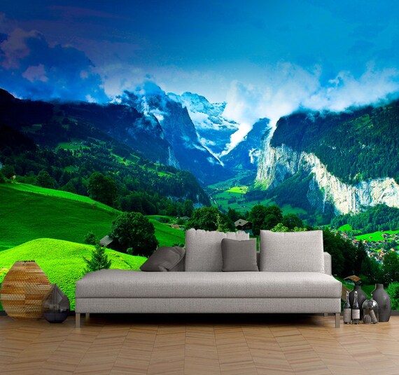 Green Mountains Mural For Wall Decor Nature Wall Mural For Room Decor Mountain Wall Mural For Living Room Sku 20276